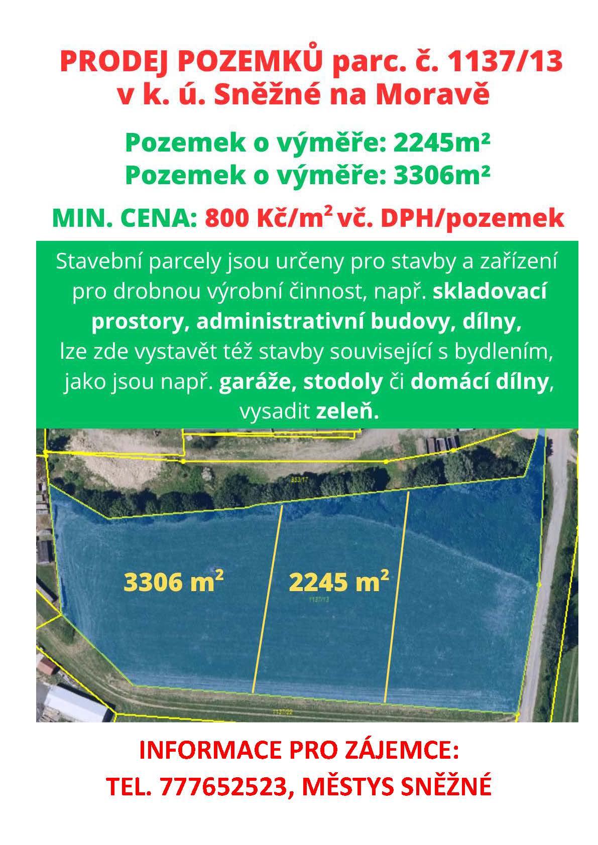 Městys Sněžné - prodej pozemků